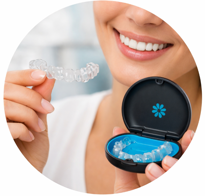 Alinhamento dental discreto, pensado para oferecer conforto e estética durante o tratamento.